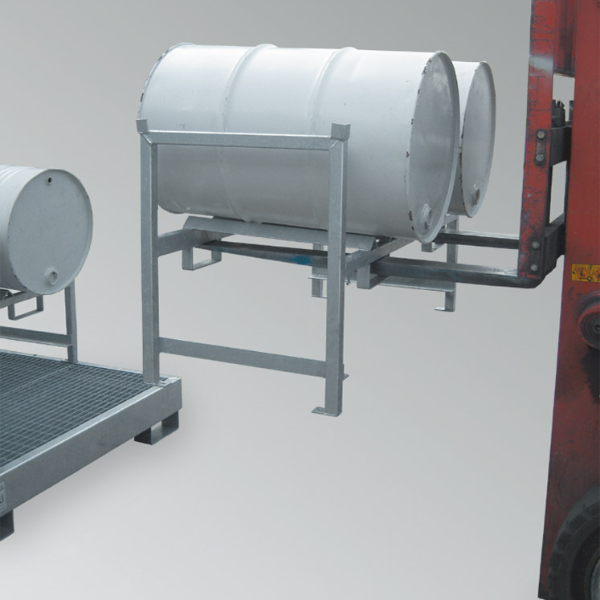 - Regał przystosowany jest do składowania 2 stalowych beczek o pojemności do 200 litrów.