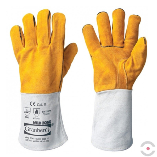 Profesjonalne rękawice spawalnicze renomowanej niemieckiej firmy Granberg wykonane z wysokiej jakości dwoiny bydlęcej, w pełni wyściełane bawełnianym flizem.