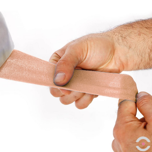 - Bandaż przylega do siebie, nie klejąc się do skóry ani włosów, co zapewnia komfort użytkowania i łatwość aplikacji.
