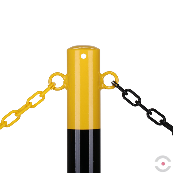 - Wyposażony jest w dwa uchwyty oczkowe, które umożliwiają łatwe połączenie z łańcuchami odgradzającymi.