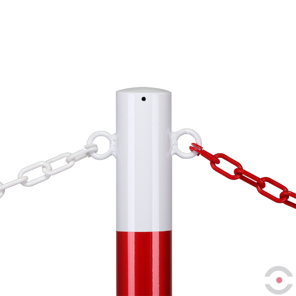 - Kontrastowy, biało-czerwony słupek skutecznie przyciąga uwagę i zwiększa bezpieczeństwo.