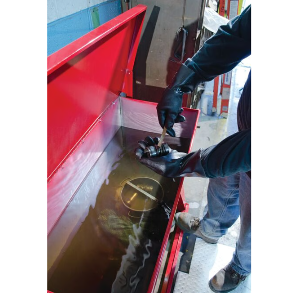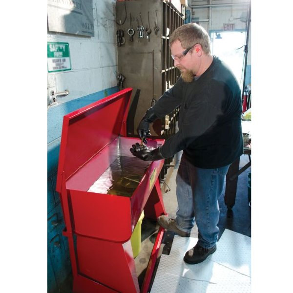 Stojący zbiornik do mycia i czyszczenia pozwala na całkowite zanurzenie, w kąpieli, dużych części i podzespołów.