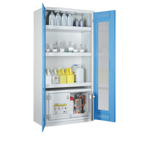 Wielofunkcyjne rozwiązanie przeznaczone do bezpiecznego, pasywnego składowania. Zapewnia bezpieczne magazynowanie materiałów łatwopalnych (Typ 30 - 30 min). Jednocześnie umożliwia składowanie materiałów toksycznych oraz innych niebezpiecznych chemikaliów. Przystosowana jest do przechowywania substancji w pojemnikach o różnej pojemności. Stosowana w pomieszczeniach roboczych, takich jak laboratoria i hale produkcyjne, w bezpośrednim pobliżu stanowiska pracy. Profesjonalne rozwiązanie spełniające najwyższe normy polskie i europejskie, eliminujące potrzebę budowania oddzielnych pomieszczeń magazynowych.