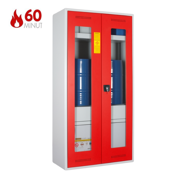 Wielofunkcyjne rozwiązanie przeznaczone do bezpiecznego, pasywnego składowania. Zapewnia bezpieczne magazynowanie materiałów łatwopalnych (Typ 60 - 60 min) w pojemnikach. Jednocześnie umożliwia składowanie materiałów toksycznych oraz innych niebezpiecznych chemikaliów. Przystosowana jest do przechowywania substancji w beczkach 60 l oraz pojemnikach o różnej pojemności. Stosowana w pomieszczeniach roboczych, takich jak laboratoria i hale produkcyjne, w bezpośrednim pobliżu stanowiska pracy. Profesjonalne rozwiązanie spełniające najwyższe normy polskie i europejskie, eliminujące potrzebę budowania oddzielnych pomieszczeń magazynowych.
