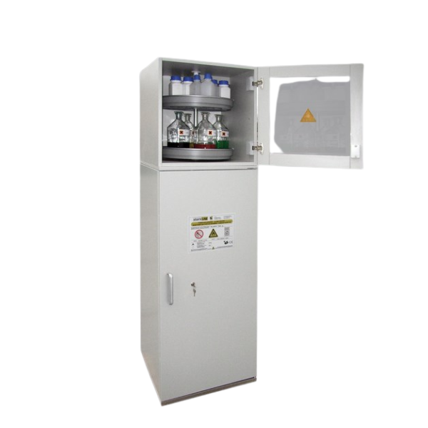Wielofunkcyjne rozwiązanie przeznaczone do bezpiecznego, pasywnego składowania. Zapewnia bezpieczne magazynowanie materiałów łatwopalnych (Typ 90 - 90 min). Umożliwia jednoczesne składowanie kwasów, zasad, roztworów alkalicznych, materiałów toksycznych oraz innych niebezpiecznych chemikaliów. Przystosowana jest do przechowywania substancji w pojemnikach o różnej pojemności. Stosowana w pomieszczeniach roboczych, takich jak laboratoria i hale produkcyjne, w bezpośrednim pobliżu stanowiska pracy. Profesjonalne rozwiązanie spełniające najwyższe normy polskie i europejskie, eliminujące potrzebę budowania oddzielnych pomieszczeń magazynowych.