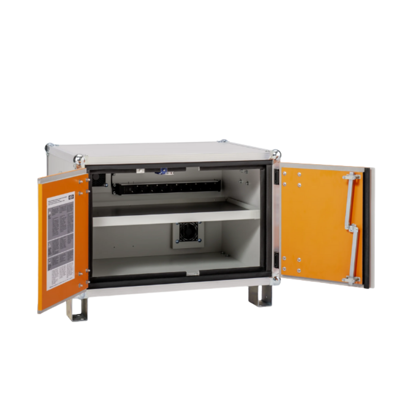 - Maksymalna pojemność szafy wynosi 3 kWh i oferuje dwa poziomy ładowania