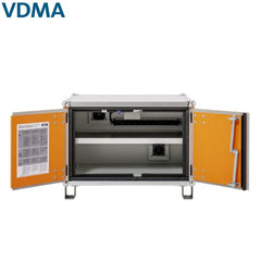 Szafa zabezpieczająca, przeciwwybuchowa z gniazdami do ładowania przeznaczona jest do przechowywania i ładowania akumulatorów litowo-jonowych. Zgodnie z wytycznymi VDMA szafa musi wytrzymać działa...