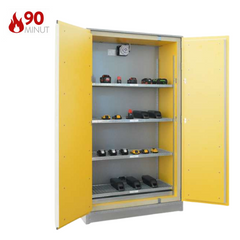 Szafa ognioodporna Topserw BATT-90 XL przeznaczona jest do bezpiecznego przechowywania baterii i akumulatorów litowo-jonowych o różnych pojemnościach. Stosowana powszechnie w laboratoriach, magazynach, biurach i na stanowiskach produkcyjnych. Gwarantuje najwyższy poziom zabezpieczenia przed skutkami awarii akumulatorów oraz pożarem. Spełnia wymogi najnowszych norm europejskich oraz oferuje optymalną organizację wnętrza, umożliwiającą przechowywanie baterii.