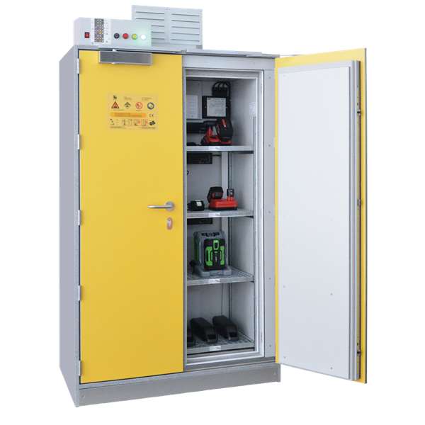 Szafa ognioodporna 90 min przeznaczona jest do aktywnego i pasywnego przechowywania baterii i akumulatorów litowo-jonowych o różnych pojemnościach. Stosowana powszechnie w laboratoriach, biurach, magazynach i na stanowiskach produkcyjnych. Gwarantuje najwyższy poziom zabezpieczenia przed skutkami awarii akumulatorów oraz pożarem. Spełnia wymogi najnowszych norm europejskich oraz optymalną organizację wnętrza, umożliwiającą przechowywanie baterii.