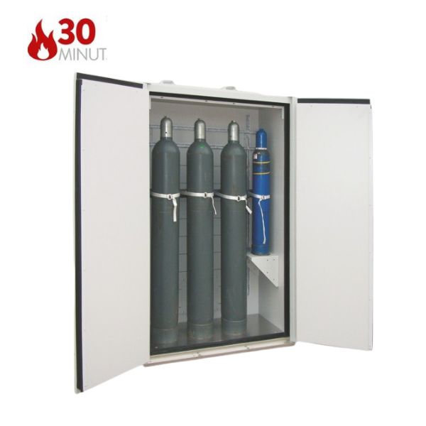 Szafa ognioodporna 30 min przeznaczona do przechowywania, użytkowania i opróżniania butli z gazem pod ciśnieniem. Stosowana jest w laboratoriach, zakładach przemysłowych, instytutach badawczych oraz wszędzie tam, gdzie wymagane jest bezpieczne magazynowanie gazów technicznych, np. tlenu, azotu, acetylenu, wodoru.