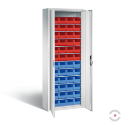 Szafa magazynowa z pojemnikami to trwałe i funkcjonalne rozwiązanie stworzone z myślą o bezpiecznym przechowywaniu narzędzi, akcesoriów oraz wyposażenia technicznego; wyposażona w praktyczne kuwetki, zapewnia uporządkowane przechowywanie małych części i wygodny dostęp do całego wnętrza, dzięki czemu doskonale sprawdzi się w warsztatach, magazynach oraz strefach produkcyjnych.