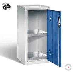 Szafa zabezpieczająca do zastosowań warsztatowych i przemysłowych została zaprojektowana z myślą o bezpiecznym i zgodnym z przepisami przechowywaniu substancji niebezpiecznych bezpośrednio na stanowisku pracy. Wyposażona w dwie tace wychwytowe z odpornego chemicznie polietylenu (PE), osadzone na stalowym, ocynkowanym podłożu, skutecznie chroni przed rozlaniem cieczy i skażeniem środowiska. Wysoka stalowa konstrukcja, system wentylacji oraz trwały system zamykania zapewniają użytkownikowi maksymalny poziom bezpieczeństwa i funkcjonalności.