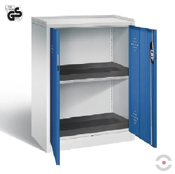 Szafa zabezpieczająca do zastosowań warsztatowych i przemysłowych została zaprojektowana z myślą o bezpiecznym i zgodnym z przepisami przechowywaniu substancji niebezpiecznych bezpośrednio na stanowisku pracy. Wyposażona w dwie tace wychwytowe z odpornego chemicznie polietylenu (PE), osadzone na stalowym, ocynkowanym podłożu, skutecznie chroni przed rozlaniem cieczy i skażeniem środowiska. Wysoka stalowa konstrukcja, system wentylacji oraz trwały system zamykania zapewniają użytkownikowi maksymalny poziom bezpieczeństwa i funkcjonalności.
