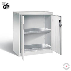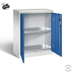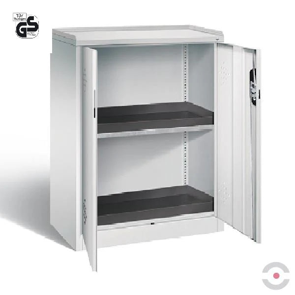 Szafa zabezpieczająca do zastosowań warsztatowych i przemysłowych została zaprojektowana z myślą o bezpiecznym i zgodnym z przepisami przechowywaniu substancji niebezpiecznych bezpośrednio na stanowisku pracy. Wyposażona w dwie tace wychwytowe z odpornego chemicznie polietylenu (PE), osadzone na stalowym, ocynkowanym podłożu, skutecznie chroni przed rozlaniem cieczy i skażeniem środowiska. Wysoka stalowa konstrukcja, system wentylacji oraz trwały system zamykania zapewniają użytkownikowi maksymalny poziom bezpieczeństwa i funkcjonalności.