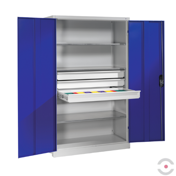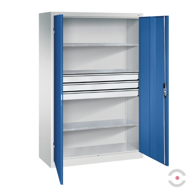 - Praktyczna i przestronna szafa magazynowa o zwiększonej pojemności, stworzona z myślą o przechowywaniu w warsztatach i magazynach.