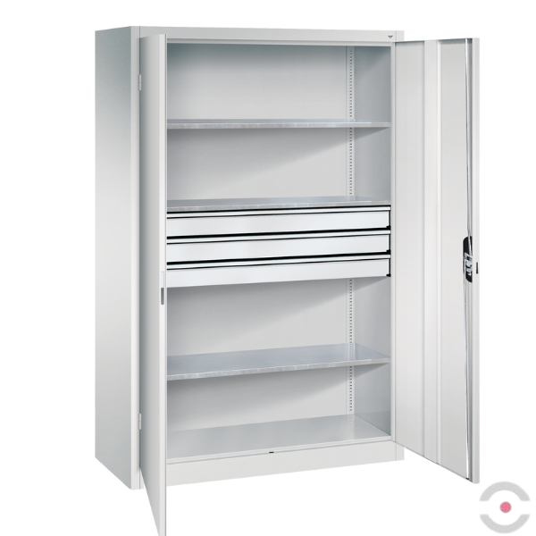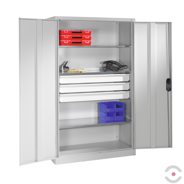 - Praktyczna i przestronna szafa magazynowa o zwiększonej pojemności, stworzona z myślą o przechowywaniu w warsztatach i magazynach.