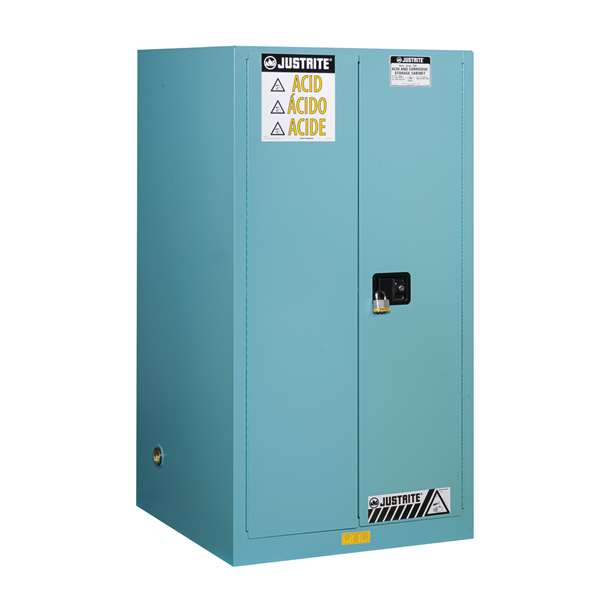 Szafa zabezpieczająca na materiały korozyjne, stojąca, jest niezbędna wszędzie tam, gdzie wykorzystywane i składowane są substancje niebezpieczne na stanowisku pracy. Zapewnia bezpieczne magazynowanie materiałów żrących, korozyjnych, w celu ochrony personelu i mienia.