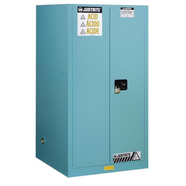 Szafa zabezpieczająca na materiały korozyjne, stojąca, jest niezbędna wszędzie tam, gdzie wykorzystywane i składowane są substancje niebezpieczne na stanowisku pracy. Zapewnia bezpieczne magazynowanie materiałów żrących, korozyjnych, w celu ochrony personelu i mienia.