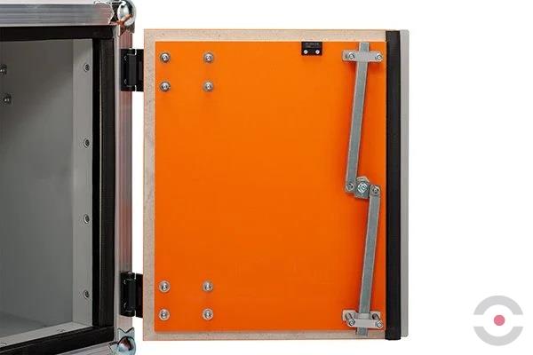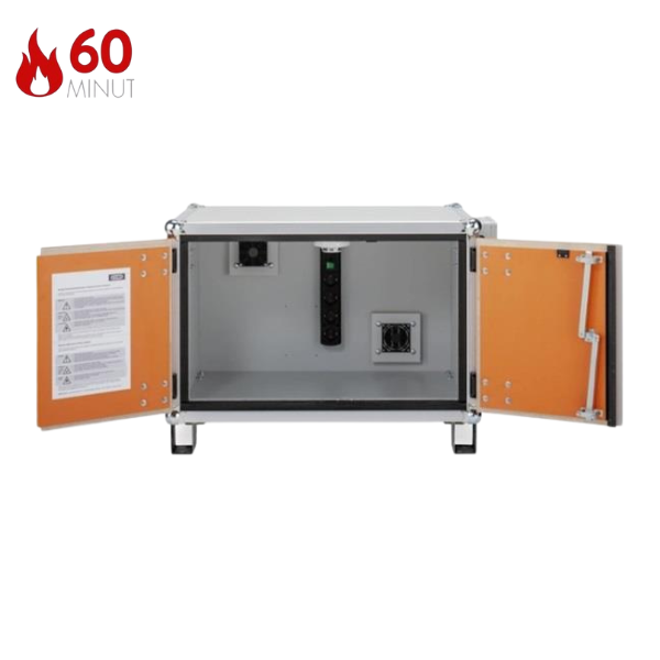 - W standardzie bezpotencjałowe wyjście do przyłączenia systemu sygnalizacji pożaru na zewnątrz szafy oraz rączki ułatwiające przenoszenie