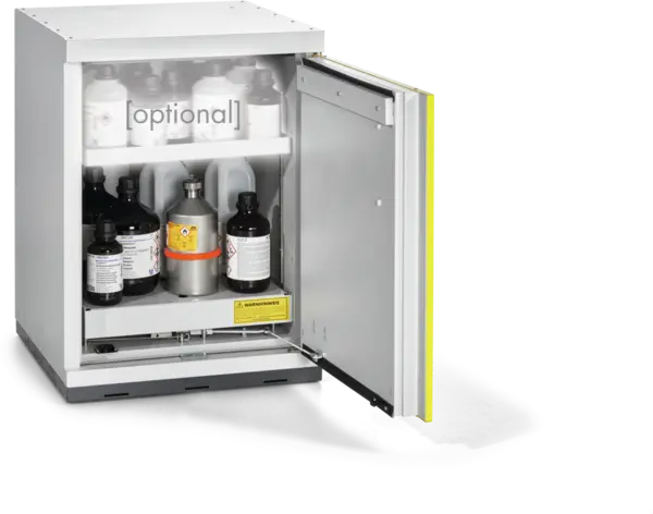 Szafa ognioodporna 90-minutowa podblatowa służy do bezpiecznego, pasywnego składowania materiałów łatwopalnych (niebezpiecznych) w pojemnikach o różnej pojemności w pomieszczeniach roboczych (labor...