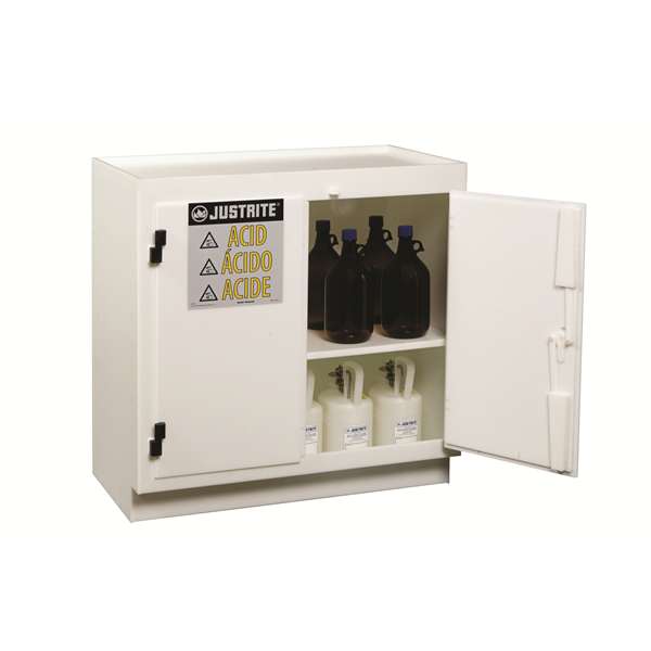 Zaleca się, aby płyny korozyjne przechowywać wyłącznie w szczelnych, odpowiednio przeznaczonych do tego pojemnikach. W celu utrzymania długotrwałej żywotności szafy należy regularnie dbać o niską wilgotność powietrza oraz sprawną wentylację pomieszczenia, a wszelkie wycieki oraz pozostałości płynów usuwać niezwłocznie po ich zauważeniu.