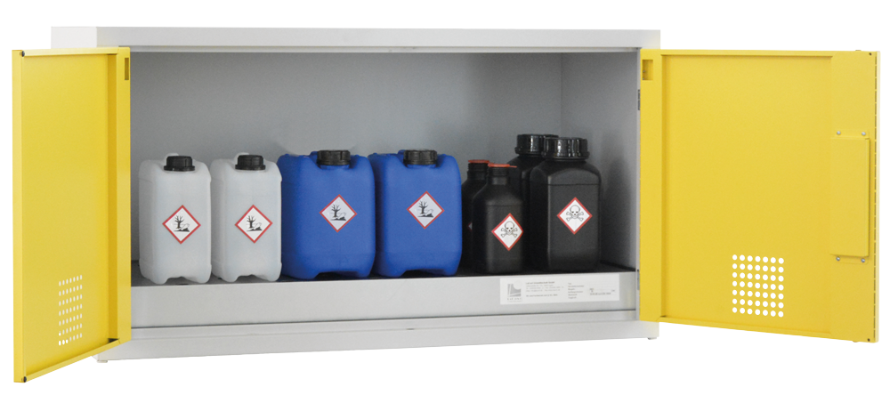Szafa zabezpieczająca na substancje trujące do ustawienia pod blatem jest niezbędna wszędzie tam, gdzie wykorzystywane i składowane są substancje niebezpieczne na stanowisku pracy. Rozwiązanie to umożliwia wygodne składowanie materiałów niebezpiecznych bezpośrednio w pobliżu miejsca ich użytkowania.