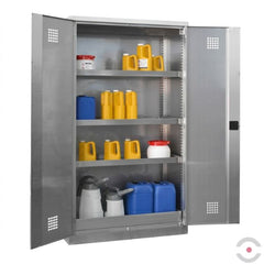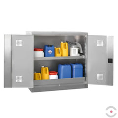 Szafa ze stali nierdzewnej przeznaczona do bezpiecznego przechowywania substancji niebezpiecznych dla wody oraz agresywnych substancji chemicznych w małych pojemnikach, stosowana w pomieszczeniach wewnątrz budynków. Rozwiązanie to umożliwia bezpieczne i uporządkowane składowanie materiałów chemicznych również w pomieszczeniach wilgotnych i mokrych.