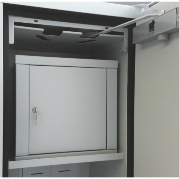 Zamykana szafka (sejf) tworząca dodatkowy zamykany przedział do magazynowania niewielkich pojemników do szaf ognioodpornych SAFE-30 XL SiS ( SF Typ 30/1200 ).