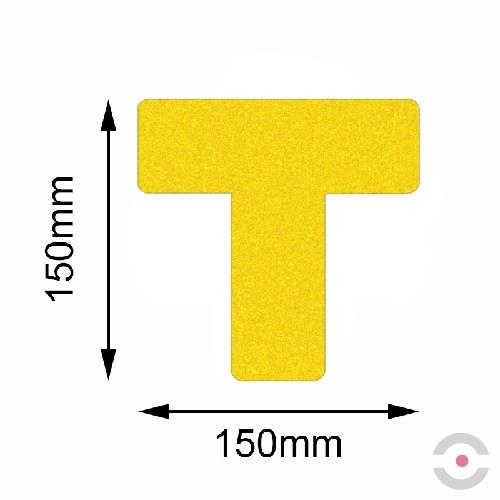 Oznakowanie podłogi z antypoślizgową powierzchnią SAFETY, w kształcie litery T, 150x150mm.