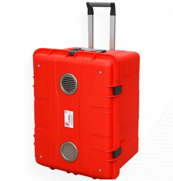Walizka przeciwpożarowa to zaawansowane rozwiązanie bezpieczeństwa przeznaczone do przechowywania, transportu oraz ładowania akumulatorów litowo-jonowych. Została zaprojektowana zgodnie z najwyższymi standardami ochrony przeciwpożarowej, aby skutecznie zapobiegać zagrożeniom jeszcze zanim do nich dojdzie. Niepalna, podwójna konstrukcja wewnętrzna z zastosowaniem technologii PyroBubbles® zapewnia maksymalną ochronę przed pożarem, eksplozją oraz innymi niebezpiecznymi zdarzeniami, nawet w przypadku uszkodzonych lub przegrzewających się akumulatorów. Dzięki bezpiecznym i przyjaznym dla środowiska materiałom walizka może być bezpiecznie użytkowana również w pomieszczeniach zamkniętych.