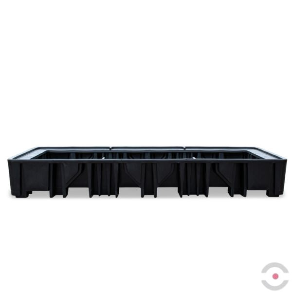 Wanna wychwytowa bez kratownicy przeznaczona do składowania trzech pojemników IBC/KTC o pojemności 1000 litrów każdy z olejami i substancjami chemicznymi, również tymi najbardziej agresywnymi. Zapewnia skuteczną ochronę powierzchni roboczych przed szkodliwymi wyciekami. Doskonale sprawdza się na halach produkcyjnych, magazynach chemii i warsztatach.