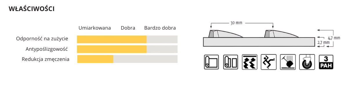 - Ognioodporność Bfl-S1 wg EN 13501-1