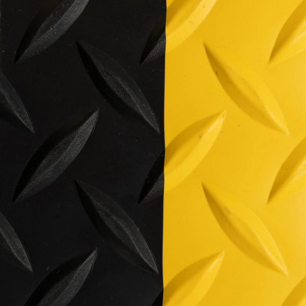 - Powierzchnia o wykończeniu blachy ryflowanej zwiększa przyczepność i zapewnia właściwości antypoślizgowe, jednocześnie chroniąc podłoże przed uszkodzeniami.