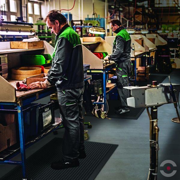 Ergonomiczna wykładzina przemysłowa, wykonana z gumy naturalnej, do stosowania w środowisku suchym, o średnio intensywnym użytkowaniu.