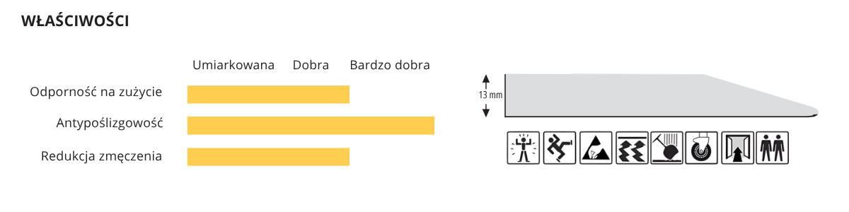 Ergonomiczna wykładzina przemysłowa, wykonana z gumy naturalnej, do stosowania w środowisku suchym, o średnio intensywnym użytkowaniu.