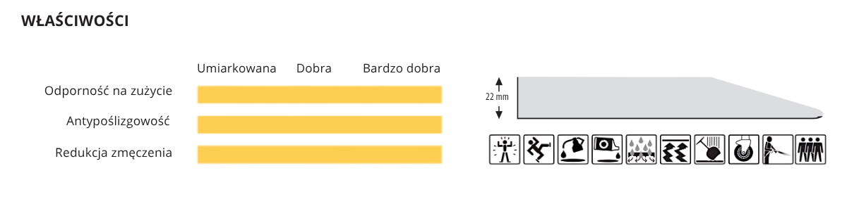 - Maty posiadają antypoślizgową powierzchnię, a dzięki grubości 22 mm zapewniają korzyści ergonomiczne