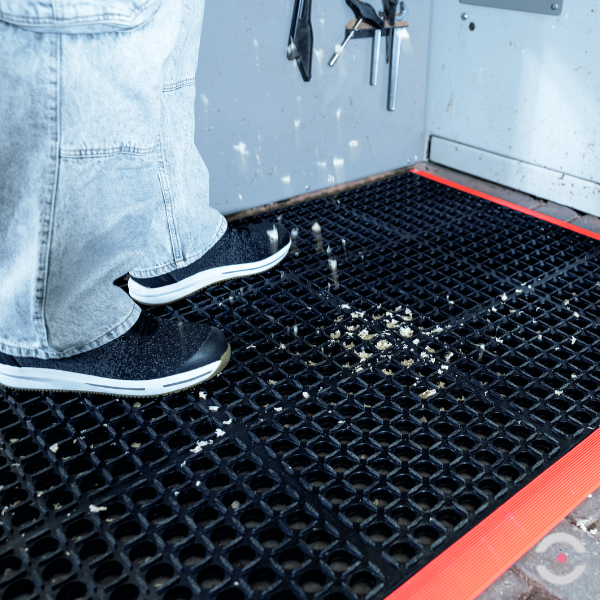 Ergonomiczna wykładzina przemysłowa, przeznaczona do stosowania w środowisku suchym, mokrym i zaolejonym, o intensywnym użytkowaniu.
