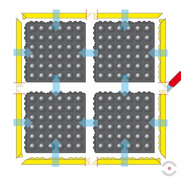 - Mata posiada linie cięcia co 30 cm, co pozwala na łatwe dopasowanie wymiarów do konkretnej przestrzeni roboczej