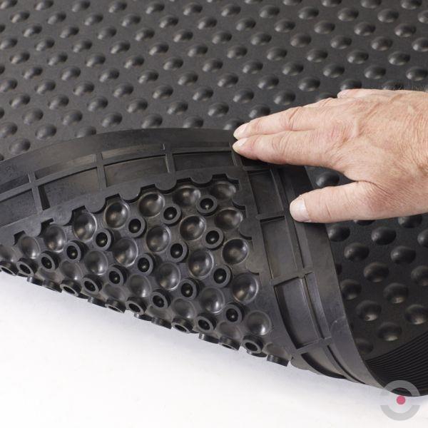 Ergonomiczna mata podłogowa o modułowej budowie, przeznaczona do środowisk suchych o dużym natężeniu pracy. Dzięki systemowi łączenia modułów można łatwo tworzyć powierzchnie o dowolnym kształcie i rozmiarze, dopasowane do indywidualnych stanowisk.