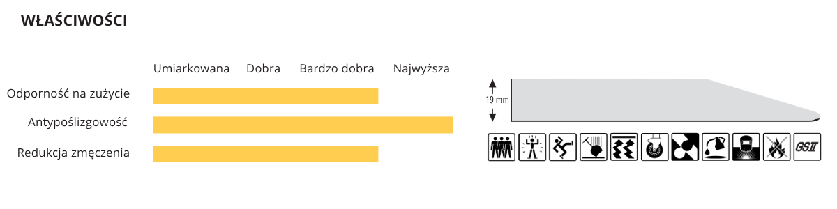 Ergonomiczna, modułowa wykładzina przemysłowa, stworzona z gumy nitrylowej do stosowania w środowiskach suchych, mokrych lub zaolejonych, o intensywnym użytkowaniu. Przeznaczona do miejsc o zwiększonym ryzyku poślizgnięcia