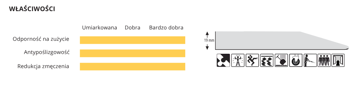 - Platforma robocza o wysokości 19 mm zapewnia doskonałe właściwości antyzmęczeniowe