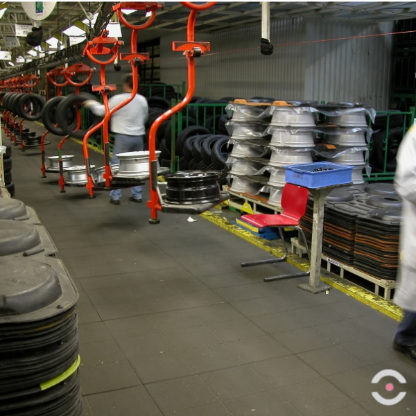 Modułowa wykładzina przemysłowa, gumowa, ergonomiczna do stosowania w środowiskach suchych o intensywnym użytkowaniu.