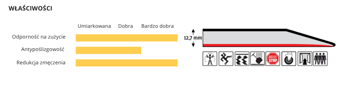Ergonomiczna wykładzina przemysłowa do stosowania w środowiskach suchych, o intensywnym użytkowaniu. Charakteryzuje się dużą wytrzymałością i redukcją zmęczenia. Posiada właściwości antypoślizgowe.