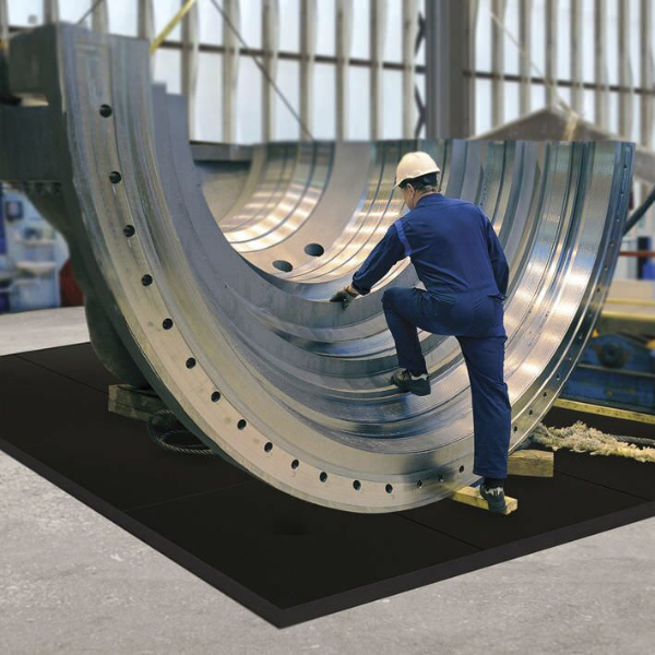 - Trwała mata ochronna, która chroni zarówno podłogi, jak i ciężki sprzęt przed uszkodzeniem