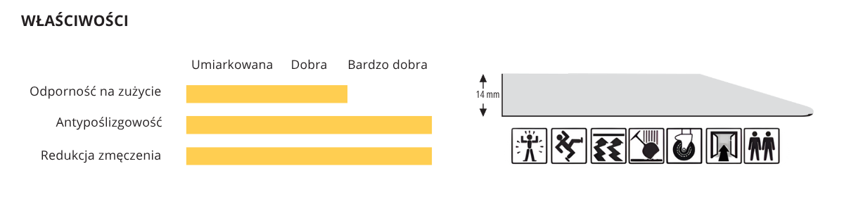 Ergonomiczna wykładzina przemysłowa, wykonana z pianki poliuretanowej, do stosowania w środowisku suchym, o średnio intensywnym użytkowaniu.