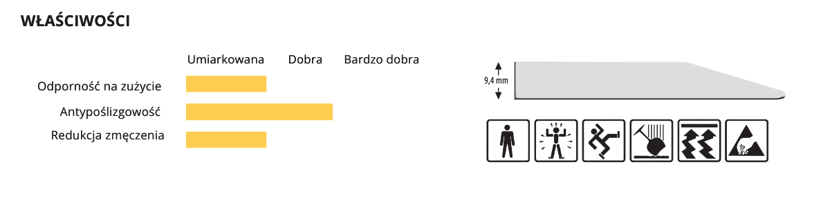 - Ergonomiczna, przeciwzmęczeniowa pianka winylowa zapewnia komfort i wsparcie oraz eliminuje ryzyko przesuwania się mat na gładkich powierzchniach podłóg