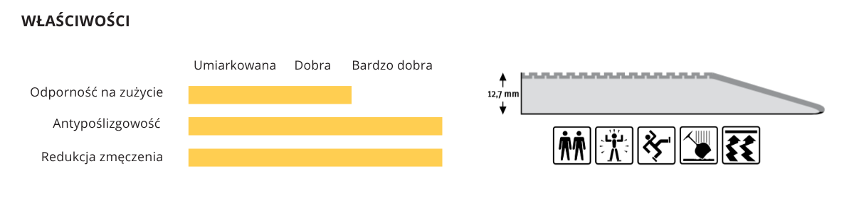 Ergonomiczna wykładzina przemysłowa do stosowania w środowiskach suchych, o średnio intensywnym użytkowaniu.