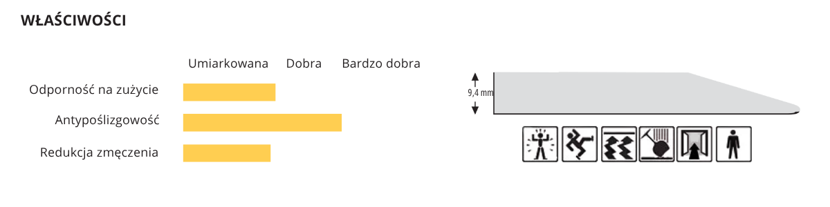 - Wymiary: 0,91 m x 18,3 m, grubość 9,4 mm