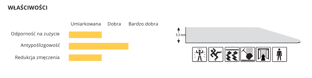 - Antypoślizgowość R10 wg DIN51130 oraz BG-rule BGR181