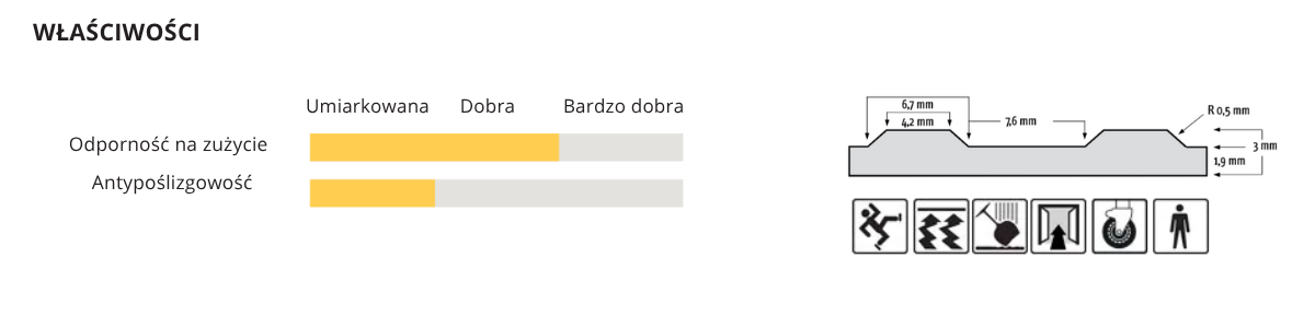 | Antypoślizgowość | Umiarkowana |